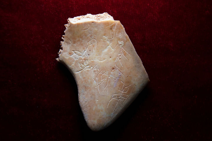 陕西宝鸡周原遗址出土的刻辞甲骨(2025年2月25日摄)。新华社记者李一博摄